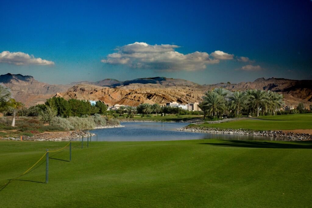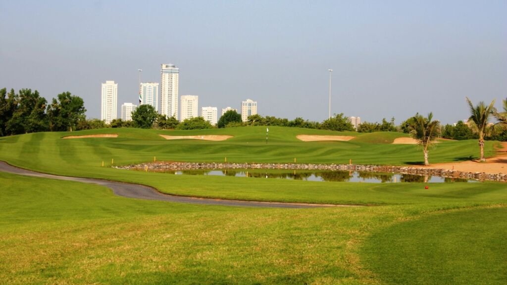 Designed by Gerald Williams and fully grassed with Paspalum (ideal for UAE conditions), the course features wide fairways, well-protected greens, and smartly positioned hazards that reward thoughtful play rather than just power.